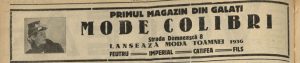 La numărul 8, Mode Colibri – prezentat drept „primul magazin din Galați” – anunța pentru toamna 1936 lansarea noilor linii în materiale precum fetru, [crep] imperial, mătase și fils [bumbac mercerizat], semn că orașul urmărea atent tendințele venite din marile centre.