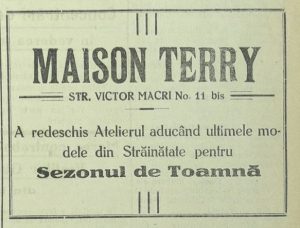 Pe strada Victor Macri, la nr. 11 bis, Maison Terry redeschidea atelierul de sezon, prezentând „ultimele modele din străinătate”, cu accent pe execuție îngrijită și croi modern.